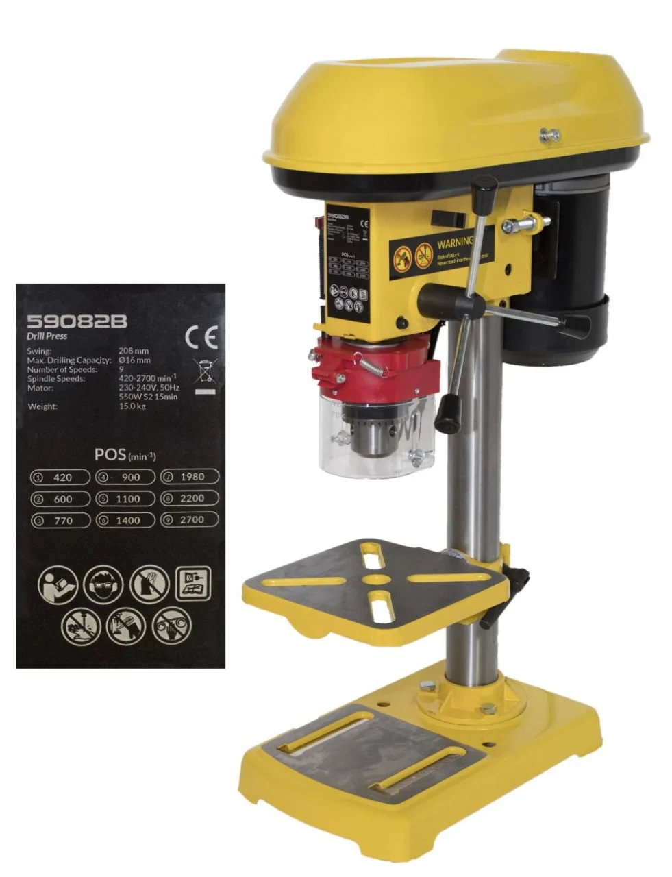 Bormasina de banc ELEFANT 59082B este proiectata pentru lucrari de gaurire in metal, plastic si lemn. Puteti ajusta viteza de rotatie cat si adancimea burghiului. De asemenea unghiul mesei este si el ajustabil pentru a oferi precizie in timpul sarcini. Securitatea in munca este obtinuta prin dotarea utilajului cu siguranta la capacul cutiei de transmisie si prin dotarea ei cu protectie a zonei de gaurire. Bormasina de banc ELEFANT este proiectata pentru lucrari de gaurire in plastic si lemn. Acest dispozitiv este prevazut cu postament pentru bancul de lucru si se poate rotii la 360 de grade in jurul coloanei. Dispozitivul este actionat de o curea de transmisie cu reglarea turatiei in trepte. Detine 2 fulii cu 4 diametre diferite. Este o masina de gaurit puternica si ergonomica, ea se preteaza pentru munca la domiciliu, constructii si in mici ateliere.