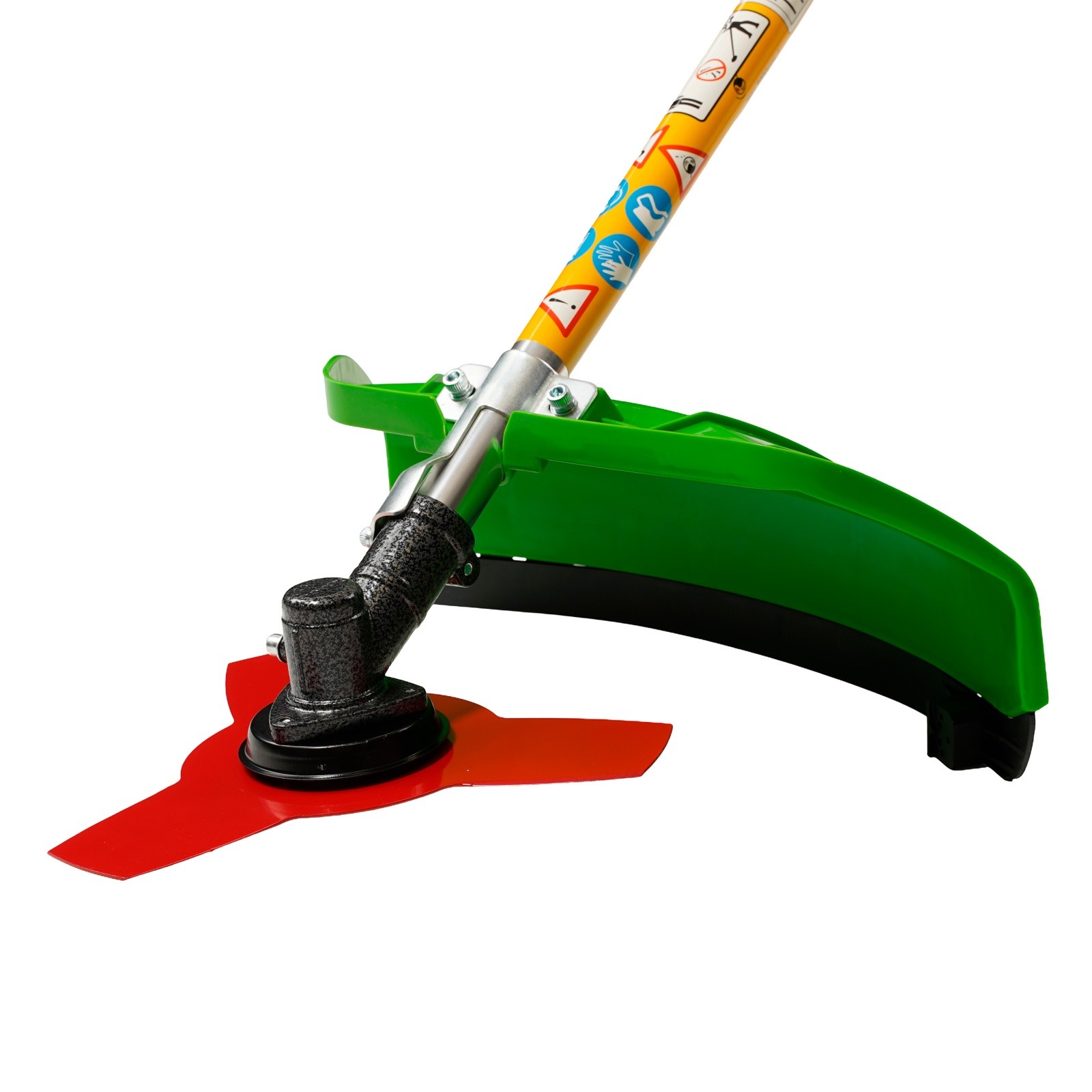 Modelul dispune de rezervor de combustibil de 1.2 litri pentru autonomie extinsa si tija demontabila in doua parti, care faciliteaza transportul si depozitarea. Pachetul include discuri de taiere, cap mosor cu fir, ham de sustinere, bidon pentru amestec carburant si trusa de montaj.