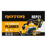 The ROTOR REP21 cordless planer is a versatile and efficient tool, perfect for woodworking, whether you are a professional or an amateur. Equipped with a 21 V battery and 3 Ah capacity, this planer offers excellent mobility, eliminating the need to be connected to a power source during use.