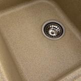 Modern granite composite sink in sand beige. Deep bowl, top-mount installation, durable and easy to clean. 2-year warranty.