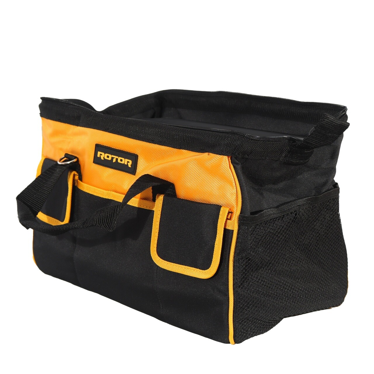 Geanta textila pentru scule ROTOR R-TB0216 este un model profesional, conceput pentru depozitarea si transportul eficient al sculelor de mana. Cu o lungime de 16 inch (aprox. 40 cm) si 21 de buzunare interioare si exterioare, ofera spatiu generos pentru o organizare perfecta.