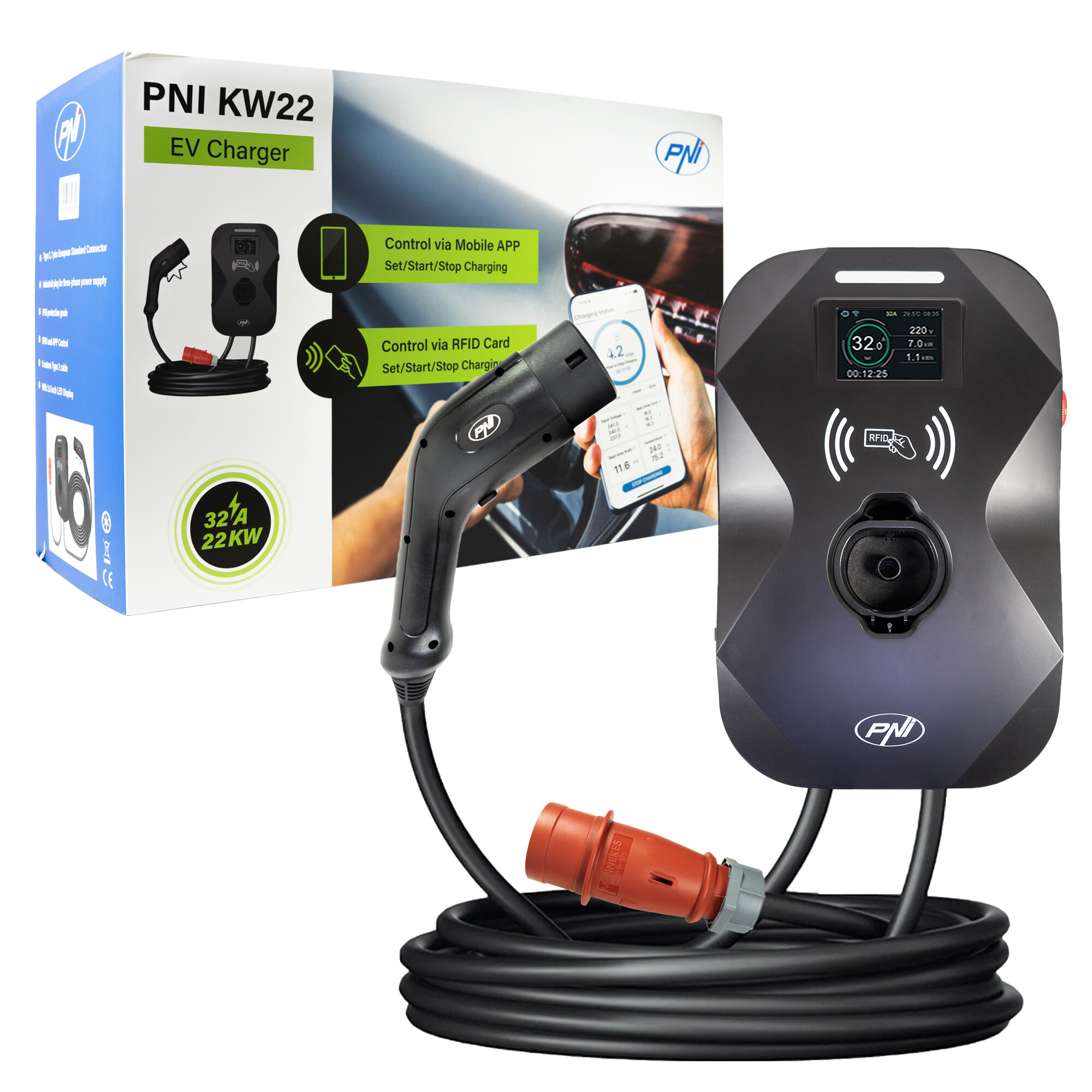 Statie de incarcare PNI KW22 32A, 22 kW, trifazata pentru masini electrice
