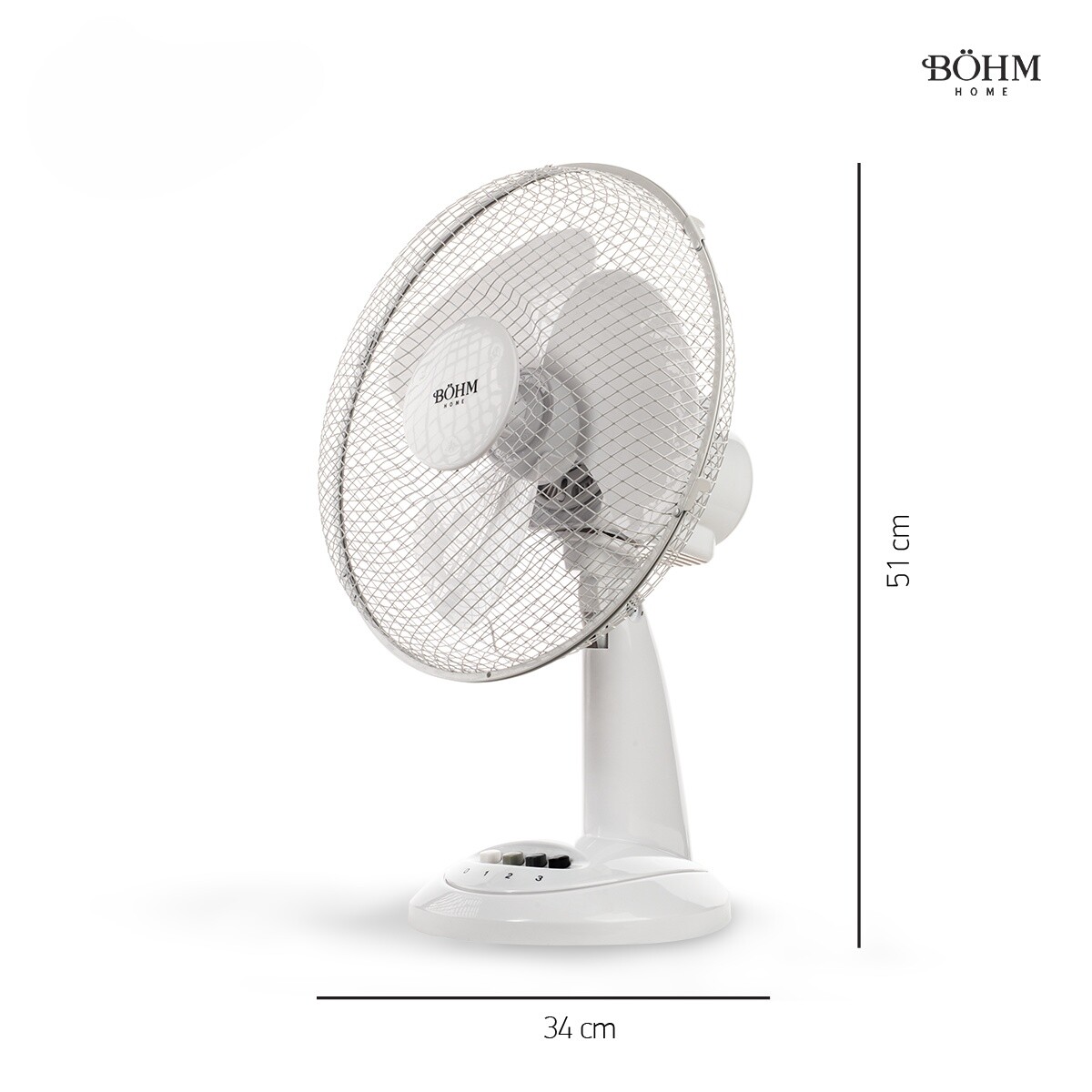 The BOHM BLTF-1203 desk fan is the ideal choice for your comfort on hot days. With a 12" diameter, 3 speed settings and a 40 W motor, it offers efficient cooling and silent operation. Its compact design makes it easy to integrate into any workspace or home.