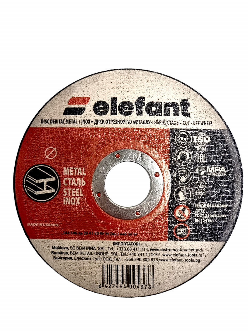 The ELEFANT abrasive disc is designed for cutting and grinding metal and stainless steel, offering excellent performance and durability.