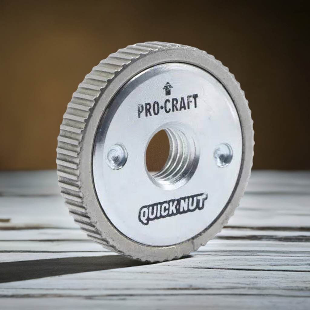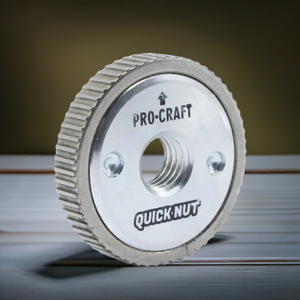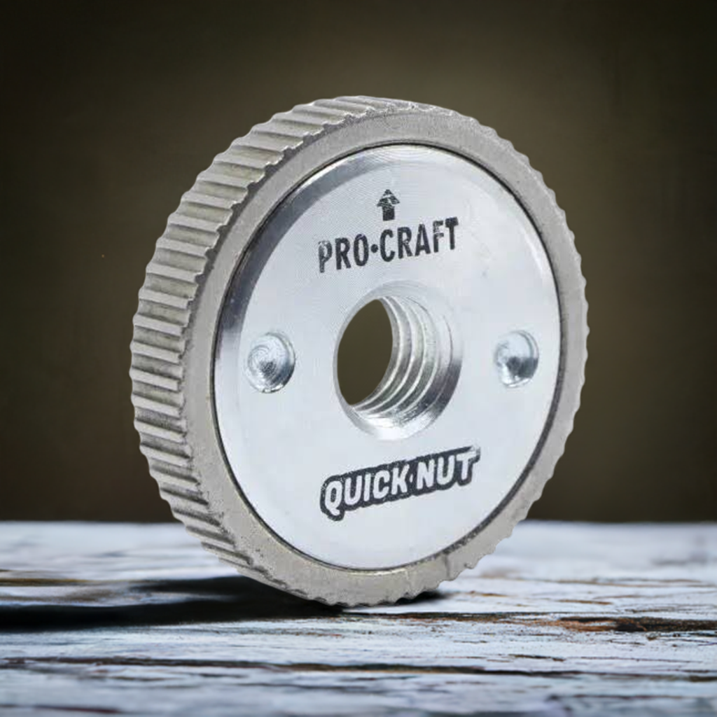 The PROCRAFT quick-release nut is an essential accessory for angle grinders, ensuring quick and easy mounting and dismounting of discs, without the need for traditional wrenches.