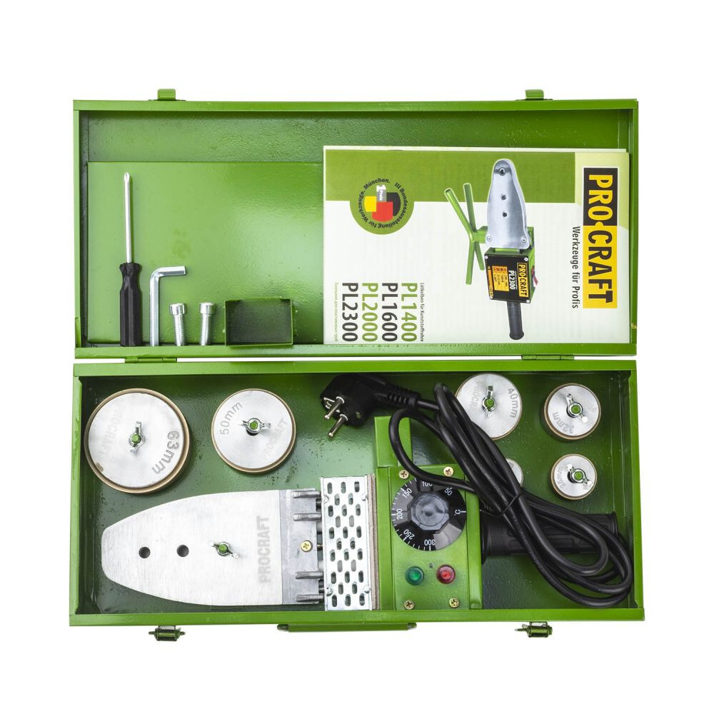 PPR hotplate Procraft PL1600, 1.6 kW, jaws 20 25 32 40 50 63 mm, PPR pipe soldering hammer