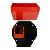 The large metal hopper allows continuous grain feeding. The included set of 4 interchangeable sieves (2 mm, 3 mm, 4 mm, and 5 mm) lets you adjust the grind size for different livestock: fine flour for chickens, medium grind for pigs, or coarse feed for rabbits.