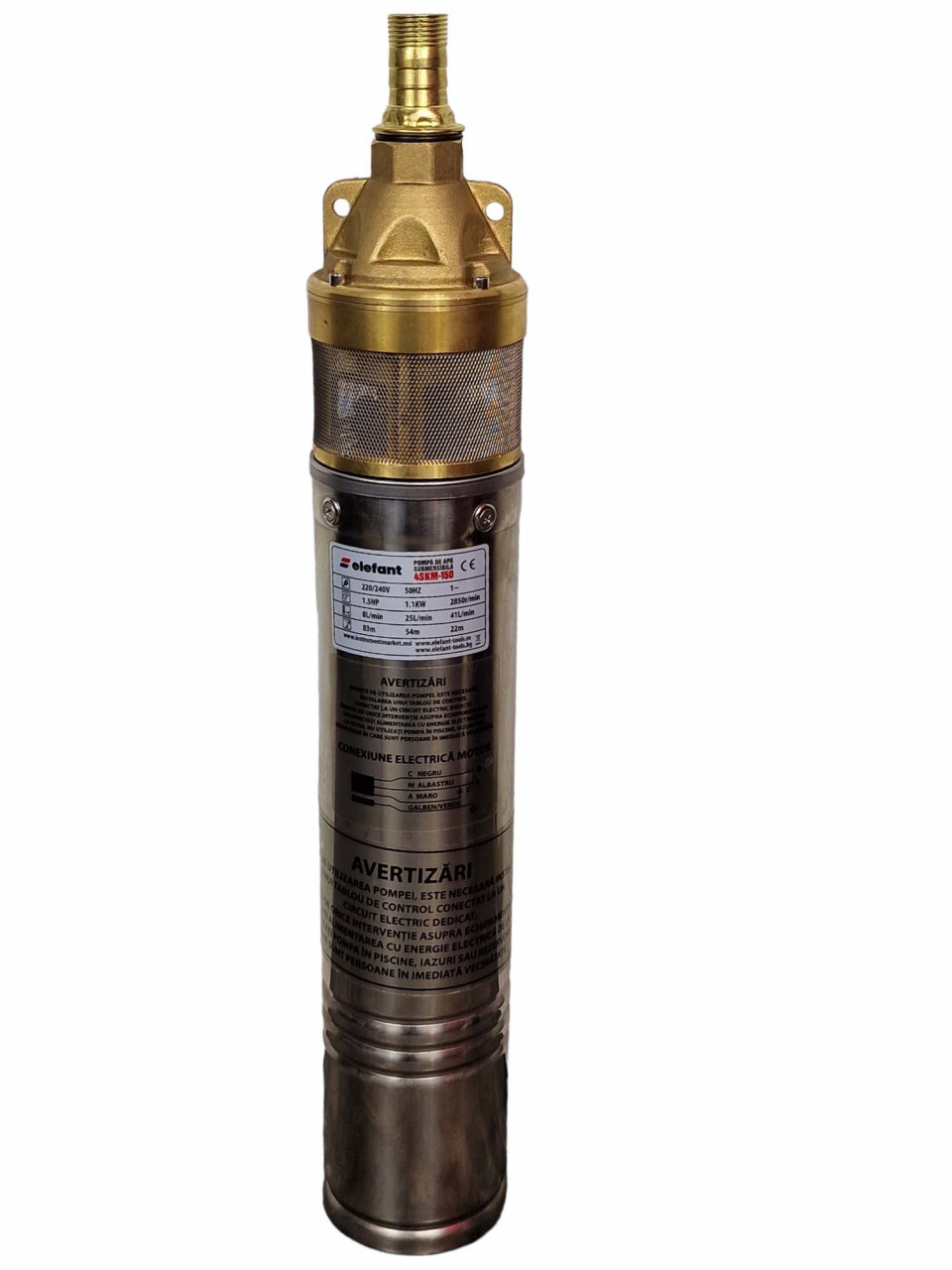 Submersible pump ELEFANT 4SKM150, 1500W power, high flow rate, ideal for clean water from wells and irrigation.