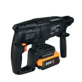 This model is equipped with a brushless motor, which means it has no carbon brushes, thus reducing friction and wear, and contributing to a longer motor life. In addition, the rotary hammer comes with a 20 V/4 Ah battery included in the package, ensuring that you always have a power source ready for your projects.