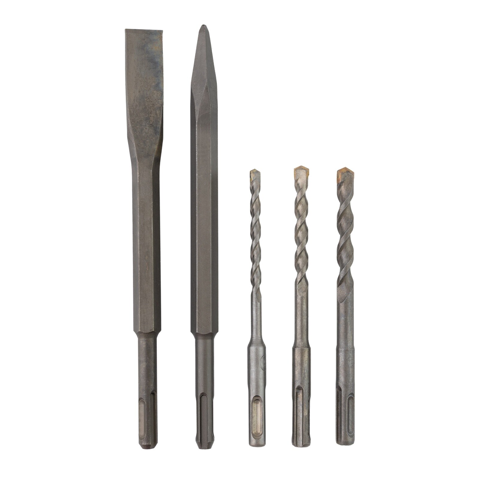 The tool includes two interchangeable chucks: an SDS-Plus for heavy-duty bits and a 3-jaw quick-release chuck for standard drill bits. Change accessories quickly without tools.