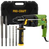 PROCRAFT BH1400 rotary hammer, 790W, SDS-Plus, 3J impact energy and 4000 bpm. Ideal for drilling and chiseling. Includes drill bits and chisel.
