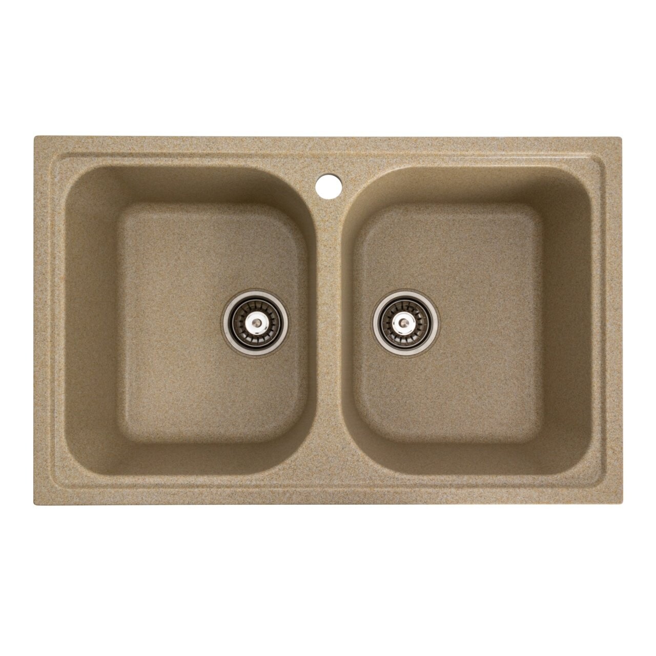 Modern granite composite sink in sand beige. Deep bowl, top-mount installation, durable and easy to clean. 2-year warranty.