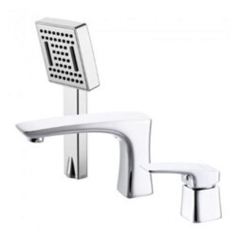 Classic bathroom faucet made of silumin, with handheld shower, hose, and wall mount. Chrome finish, durable and easy to install.