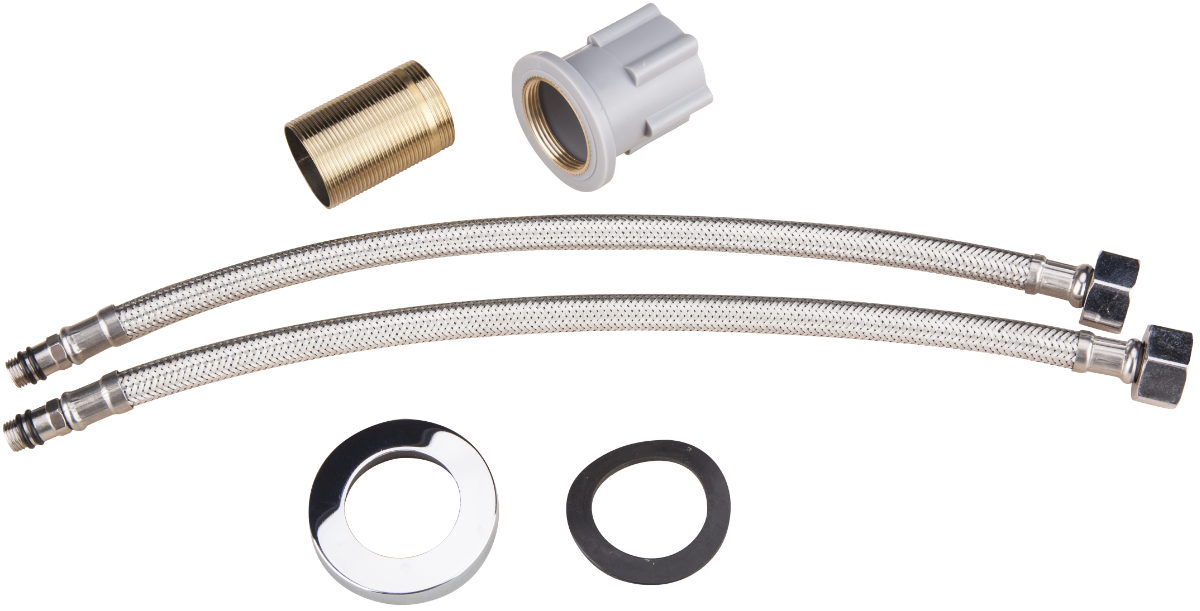The faucet is of the single-lever type, with a single lever for regulating the water temperature, having a body made of brass with a glossy finish. It is equipped with a ceramic cartridge with a diameter of 32 mm and 2 flexible connections of 350 mm.