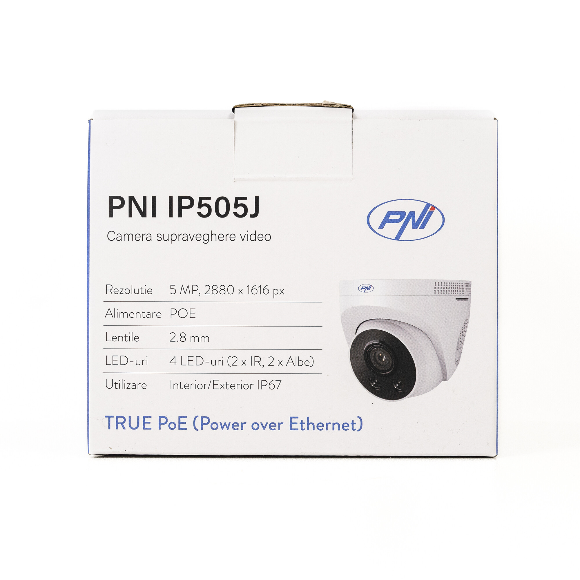 The PNI IP505J POE video surveillance camera is the ideal solution for efficient and secure monitoring of your property. With a resolution of 5MP (2880 x 1616) and the ability to record clear images in UHD format, this camera offers superior image quality, ensuring that you will not miss any important detail.