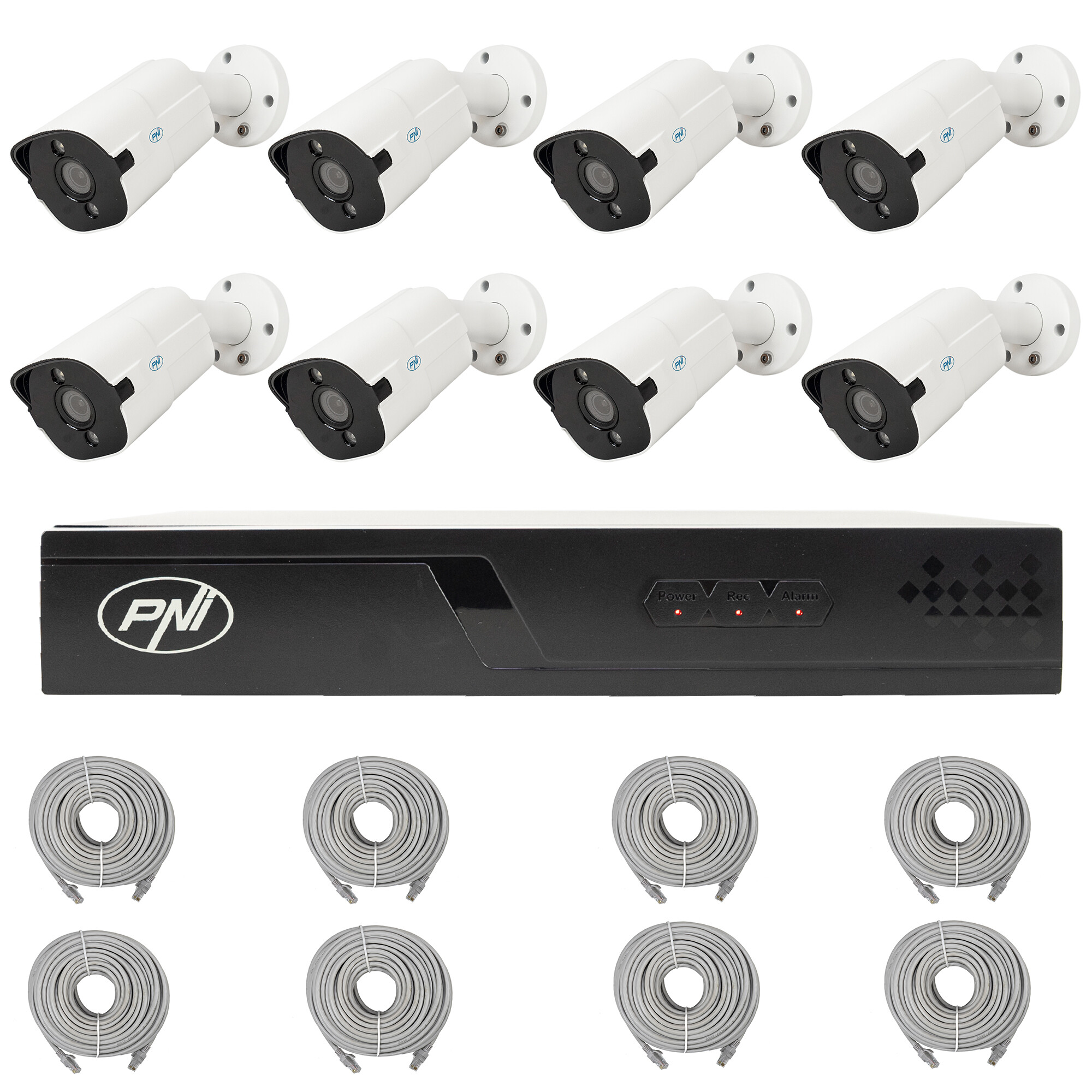 PNI House IP716J POE NVR Video Surveillance Package with 8 IP818J 8MP Cameras and 20m UTP CAT6 Cables